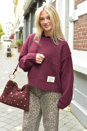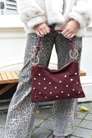 De Sola handtas in diep bordeaux combineert stijl en comfort perfect. De studs geven een stoer accent zonder te overheersen. Ideaal voor wie op zoek is naar een tas met karakter.
