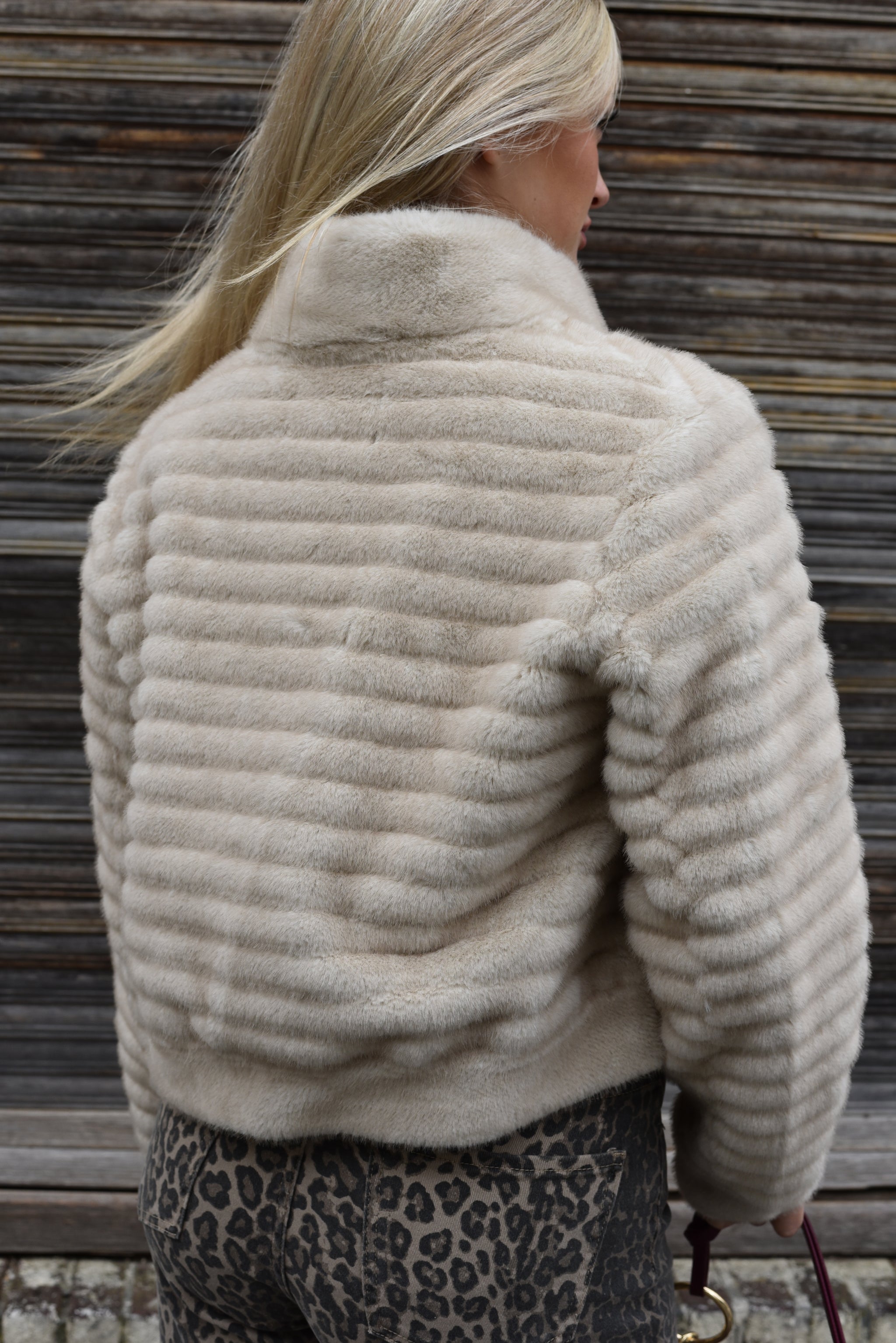 De Mandarine Faux Fur jas valt op door het gestreepte patroon in de kleuren bruin en beige. Met een ritssluiting biedt hij een praktische en comfortabele fit. Deze jas zorgt voor een sterke, stijlvolle uitstraling die je look direct versterkt.