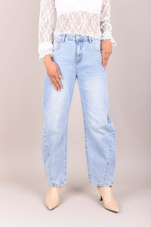 Deze dames barrel jeans heeft een moderne pasvorm met een losse fit bij de heupen en taps toelopende pijpen. Gemaakt van stevig denim en comfortabel om te dragen. Perfect voor een trendy, casual look en makkelijk te combineren.