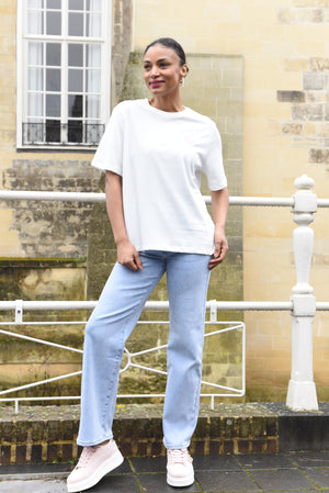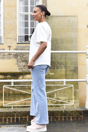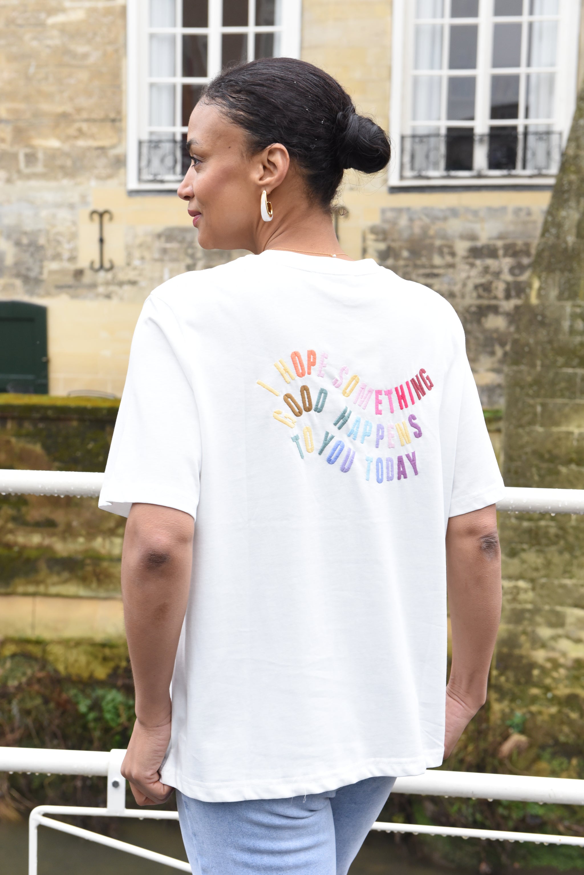 Dit dames T-shirt van katoen heeft een comfortabele, relaxte pasvorm en een speelse tekstprint op de achterkant. De zachte katoenen stof draagt prettig en maakt het shirt ideaal voor een casual, alledaagse look met een vrolijke twist.