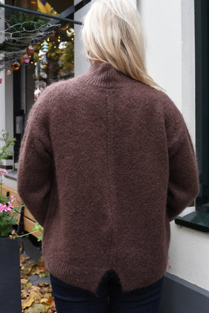 Deze wintertrui voelt direct vertrouwd aan door de zachte, warme stof waar je zo in wegzakt. De achterkant is voorzien van een elegant split detail, wat de trui net dat beetje extra geeft. Mooi om casual te dragen, maar ook perfect om een outfit stijlvol af te maken op koude dagen. Een comfortabele en veelzijdige keuze voor de hele winter.