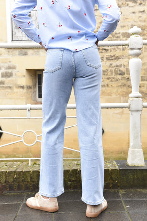 Deze dames jeans heeft een comfortabele pasvorm en een tijdloos model met rechte pijpen. Het denim draagt prettig en geeft een verzorgde uitstraling die past bij zowel casual als meer geklede combinaties.