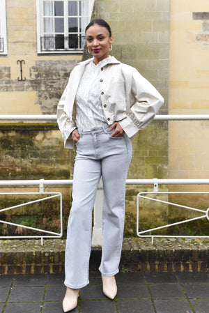 Model draagt maat 36 en is 1,78m