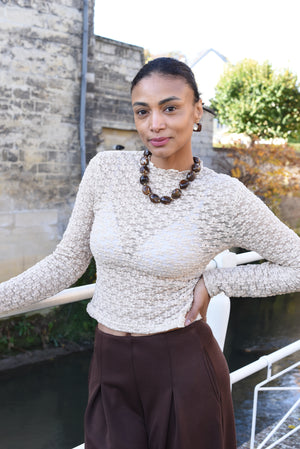 Delicate bloemetjes in kantpatroon geven dit truitje een verfijnde uitstraling. Het klassieke design past perfect bij een vest of trui voor een gelaagde look. Ideaal voor wie houdt van subtiele details en veelzijdige basics die moeiteloos combineren met je favoriete kledingstukken.