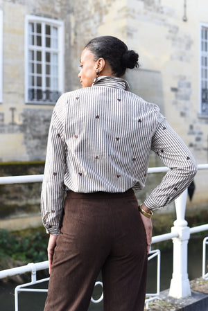 Een luchtige katoenen blouse met een speelse combinatie van hartjes en strepen. De print geeft de blouse een frisse, vrolijke uitstraling, terwijl het katoen zorgt voor draagcomfort en een mooie pasvorm.