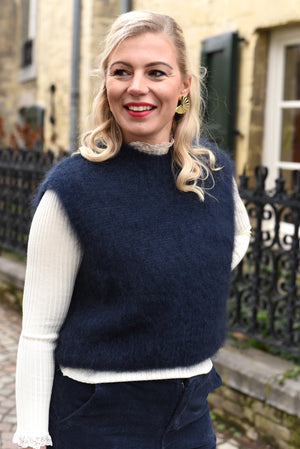 De Pixel Spencer is gemaakt van 80% kid mohair en voelt daardoor zacht en licht aan. Dankzij de luxe uitstraling geeft hij elke outfit direct meer warmte en verfijning.