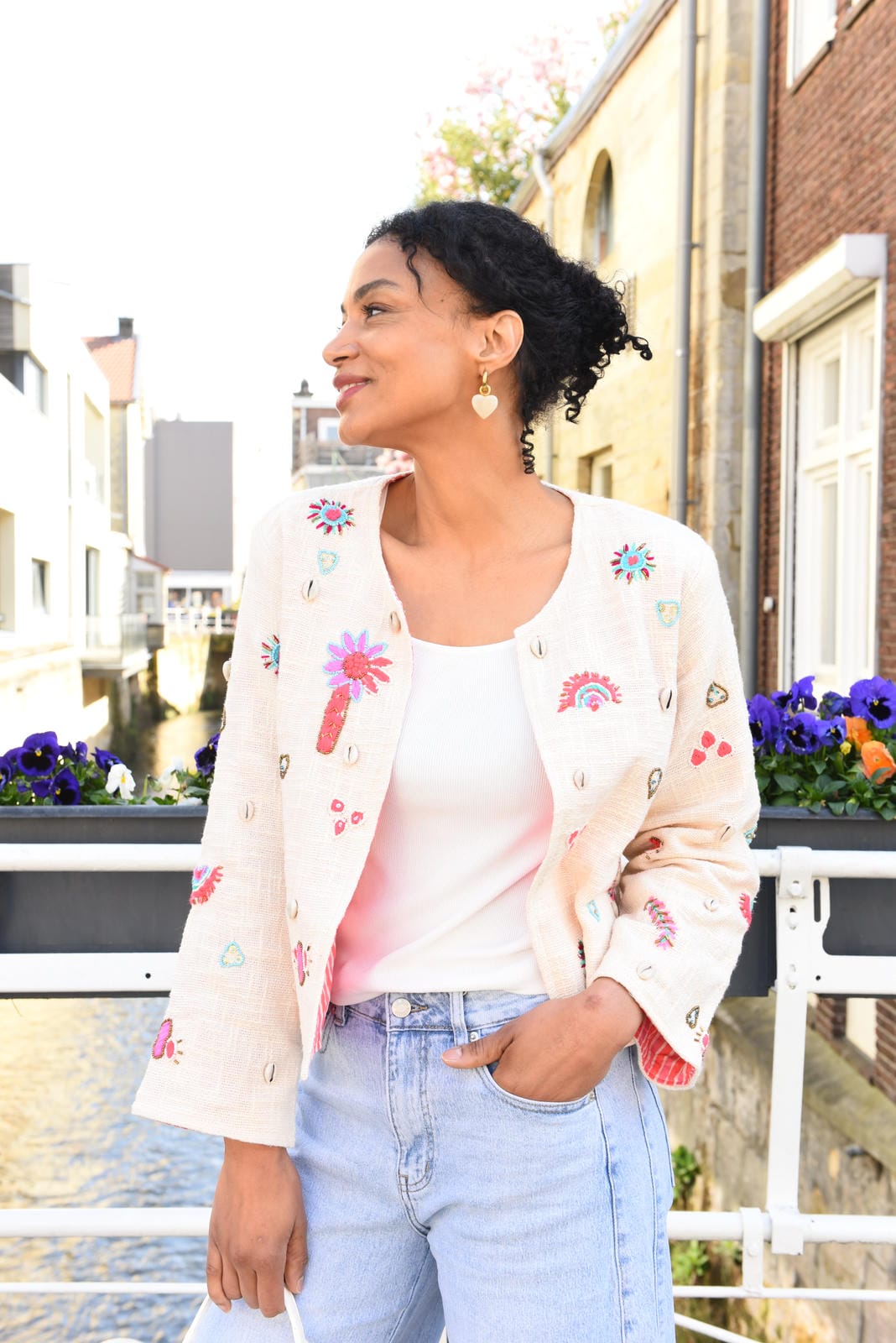 Flowerpower Jeans met Sjaaltje