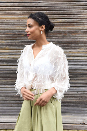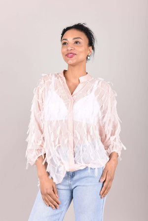 Luchtige blouse met een speelse structuur die zorgt voor een bijzondere look. De licht transparante stof maakt de blouse fijn om te dragen op warmere dagen. De losse pasvorm valt soepel en zit comfortabel. Combineert makkelijk met een broek of rok voor een leuke outfit. Een frisse blouse die net even anders is.