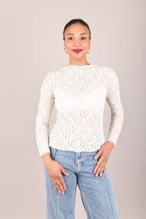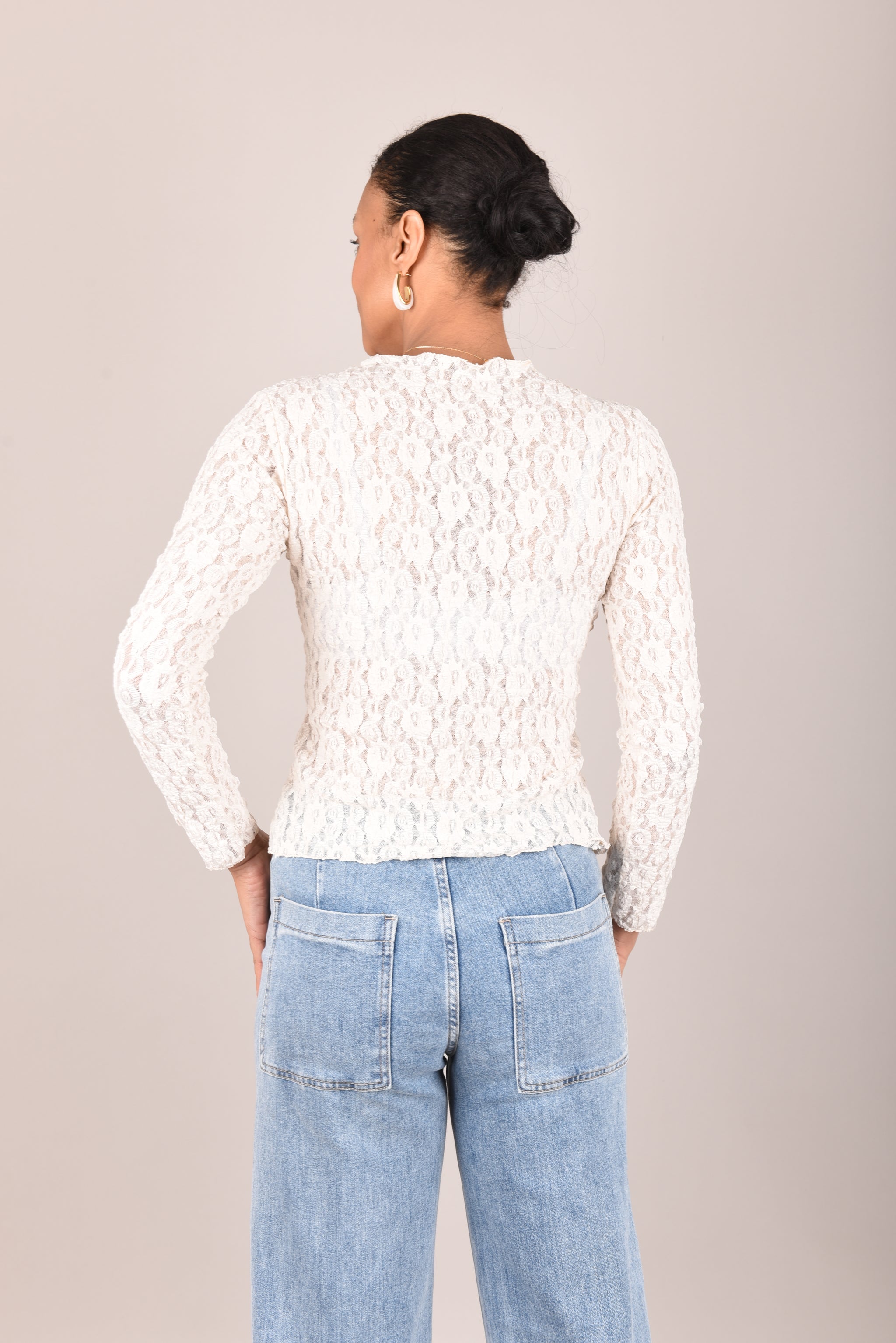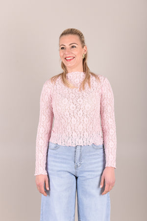 Het zusje van de Varel top. Goed te combineren onder een vestje of een top voor een speels effect.