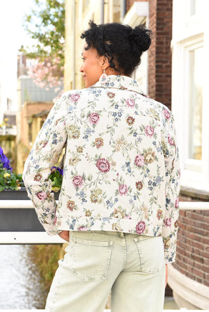 Hoe gaaf is dit jasje! De subtiele bloemenprint geeft het een frisse en vrouwelijke uitstraling, terwijl de structuur in de stof zorgt voor een mooi en bijzonder detail.