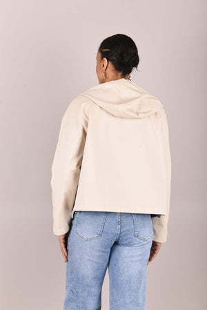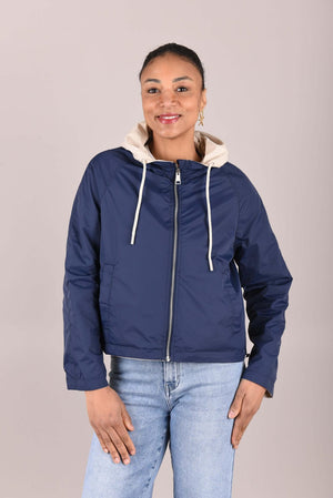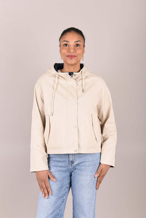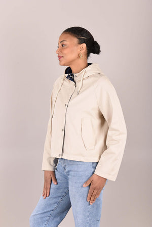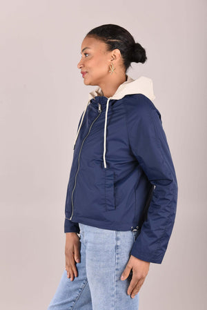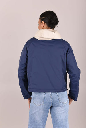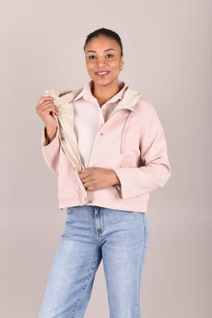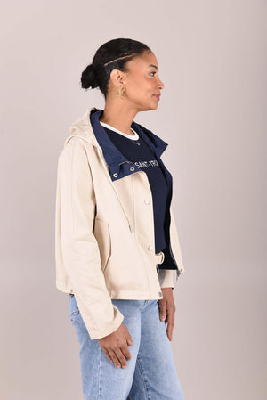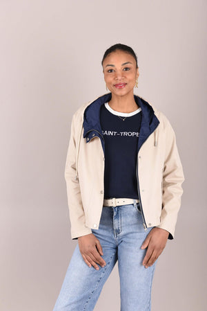 Het jack is verkrijgbaar in twee elegante kleurcombinaties: beige met donkerblauw of beige met poederroze. De lichte, comfortabele stof en sportieve details maken dit jack ideaal voor wisselvallig weer en dagelijks gebruik.