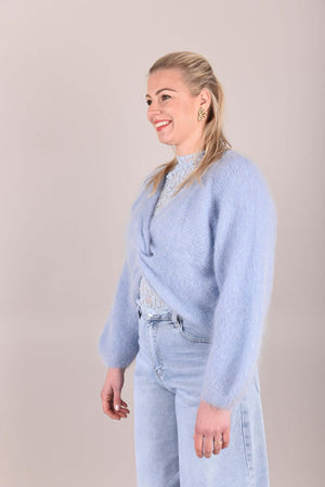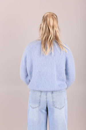 Deze zachte Kid mohair trui is een echte eyecatcher dankzij het twist detail op de rug. De trui is gemaakt van een luxe kid mohair blend, wat zorgt voor een lichte, fluffy structuur en een warm maar ademend draagcomfort. De losvallende pasvorm en lange mouwen geven de trui een elegante, nonchalante uitstraling.
